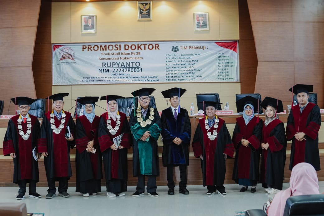 Bengkulu, Jum’at 22 Agustus 2025 – Sejarah baru tercatat di Universitas Islam Negeri (UIN) Fatmawati Sukarno Bengkulu. Dalam Sidang Terbuka Promosi Doktor yang digelar penuh khidmat, Rupyanto, putra asli Desa Pelajau, Kabupaten Bengkulu Tengah, resmi menyandang gelar Doktor setelah sukses mempertahankan disertasinya di hadapan dewan penguji. Ia dinyatakan lulus dengan predikat sangat memuaskan.