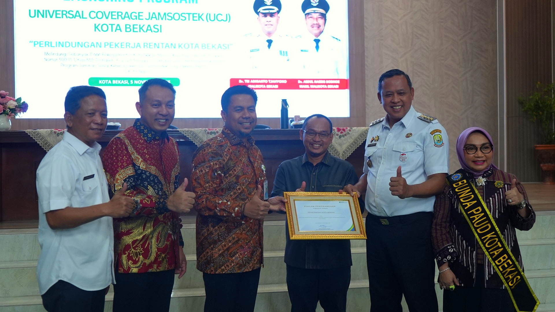 Acara tersebut dibuka langsung oleh Wali Kota Bekasi, Dr. Tri Adhianto Tjahyono, dan dihadiri oleh jajaran pejabat strategis Pemkot Bekasi serta perwakilan dari BPJS Ketenagakerjaan, menandakan sinergi lintas sektor dalam mendorong kebijakan pro-rakyat.