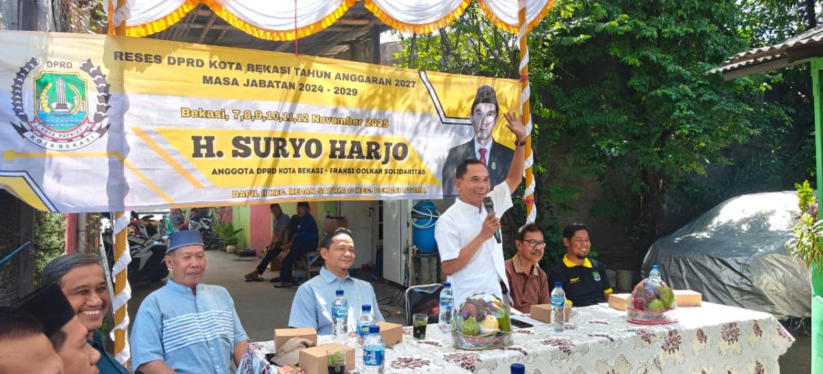 MitraBangsa.Online — Anggota Komisi II DPRD Kota Bekasi dari Daerah Pemilihan (Dapil) II, H. Suryo Harjo, sukses melaksanakan Reses Masa Sidang III Tahun 2025 di wilayah Kecamatan Medan Satria, Minggu (9/11/2025) mulai pukul 09.00 WIB.
