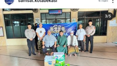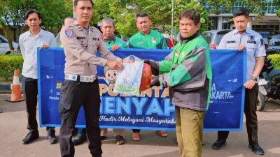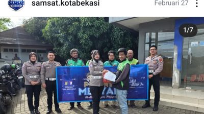 Samsat Kota Bekasi menggelar kegiatan edukasi tertib berlalu lintas sekaligus pembagian bantuan sosial kepada masyarakat, khususnya pengemudi ojek online (ojol), sebagai bagian dari dukungan terhadap Operasi Keselamatan Jaya 2026.
