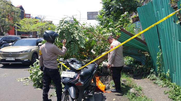- Pohon roboh berasal dari lahan kosong di pinggir Jalan Kapten A. Rivai, tepat di seberang Kantor Samsat.